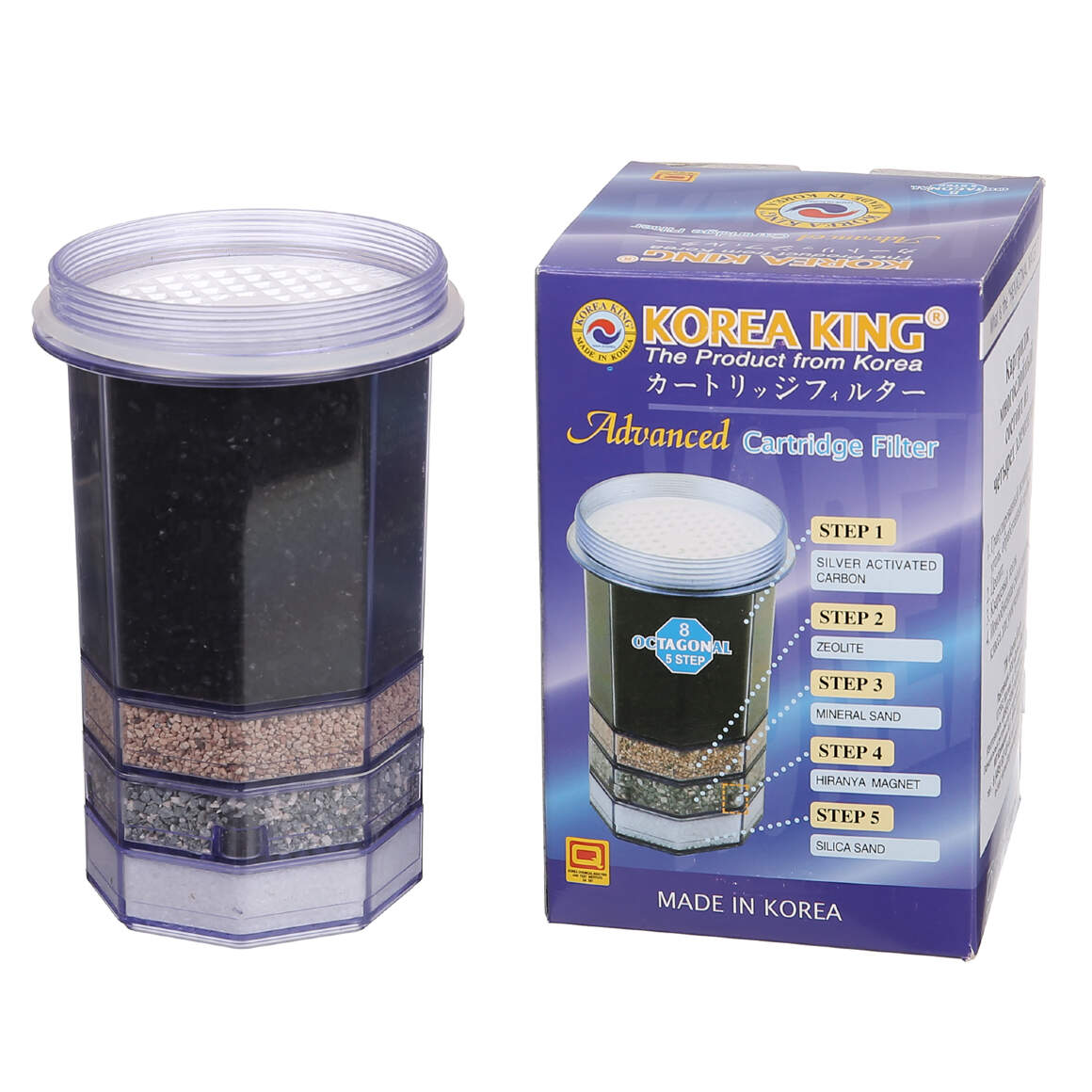 - Активированный уголь импрегнированный серебром: в фильтрующих картриджах Korea King используется не древесный уголь, как в любых других аналогичных фильтрах, а уголь полученный из скорлупы кокосового ореха. Такой уголь имеет более плотную, но в тоже время гораздо более пористую структуру, что в свою очередь увеличивает его абсорбирующую способность в несколько раз! Уголь в картридже импрегнирован ионами серебра. Ионы серебра являются отличным дезинфектором и активно борются с вредными бактериями в фильтруемой воде. Научно доказано, что ионы серебра губительно действуют на возбудителей дизентерии, брюшного тифа, холеры. К серебру очень чувствительны стрептококки, стафилококки, протеи и сальмонеллы.