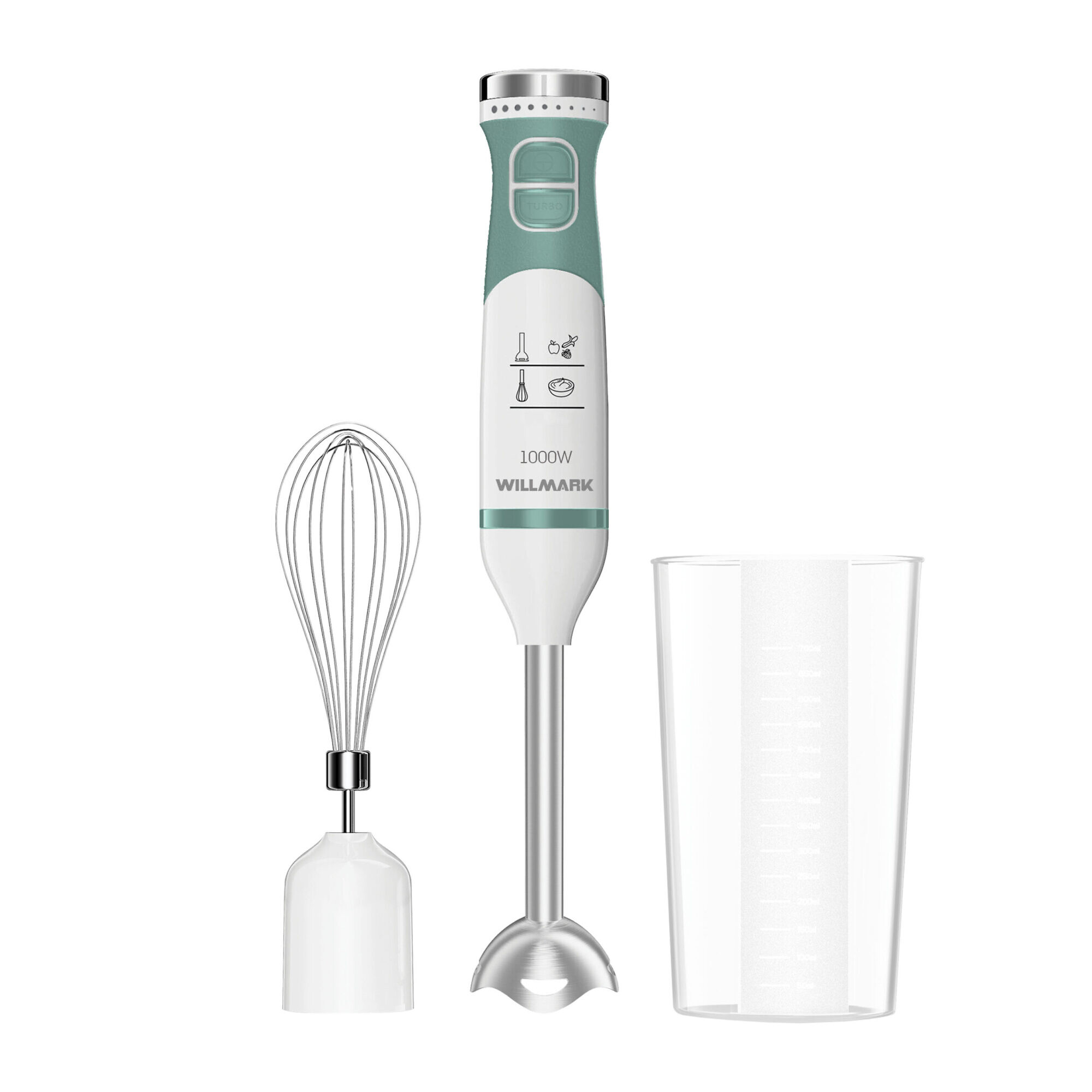 Блендер WILLMARK WHB-1153WS –многофункциональный прибор, предназначенный для смешивания, измельчения и взбивания жидкостей и мягких ингредиентов. Мощность прибора составляет 1000 Вт. На блендере установлена кнопка включения блендера, TURBO кнопка высокоскоростного режима. Блендер оборудован погружной насадкой с лезвиями и венчиком, рабочая часть которых изготовлена из нержавеющей стали. Также в комплекте к данной модели предусмотрен мерный стакан. Блендер обладает стильным дизайном и покрытием SOFT TOUCH, которое не только придает устройству привлекательный внешний вид, но и облегчает уход за ним, а также обеспечивает приятные тактильные ощущения при использовании, делая его более комфортным в работе. Этот блендер станет вашим главным кухонным помощником, ведь с его помощью Вы значительно ускорите процесс приготовления блюд и напитков. При правильном использовании, изделие прослужит Вам в течение многих лет. Готовьте с удовольствием с техникой WILLMARK!