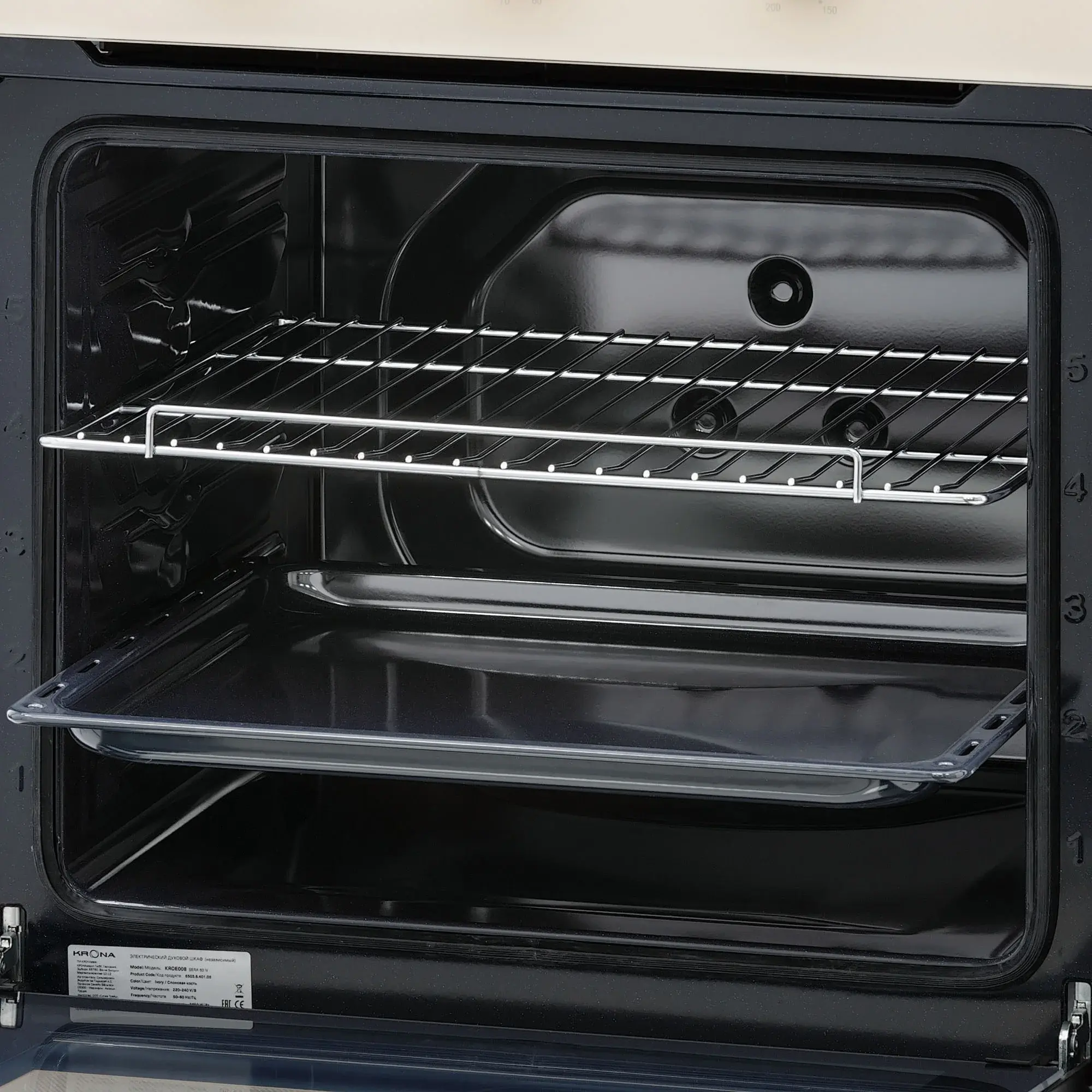 Электрический духовой шкаф SERA с пятью уровнями приготовления и полезным объемом 66 л позволяет запекать несколько блюд одновременно. Модель предусматривает усиленную теплоизоляцию LOW-E, которая предотвращает нагревание дверцы во время приготовления, а также утечку тепла из камеры. Уход за духовым шкафом стал проще благодаря особому покрытию внутренней камеры эмалью легкой очистки Easy Clean и съемной разборной двери. В комплекте с моделью вы найдете решетку для гриля и стандартный противень.