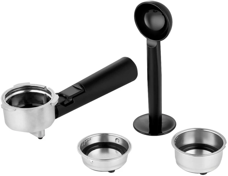 Комплектация кофеварка, фильтр стальной для рожка 2 шт, мерная ложка-темпер, инструкция с рецептами, гарантийный талон