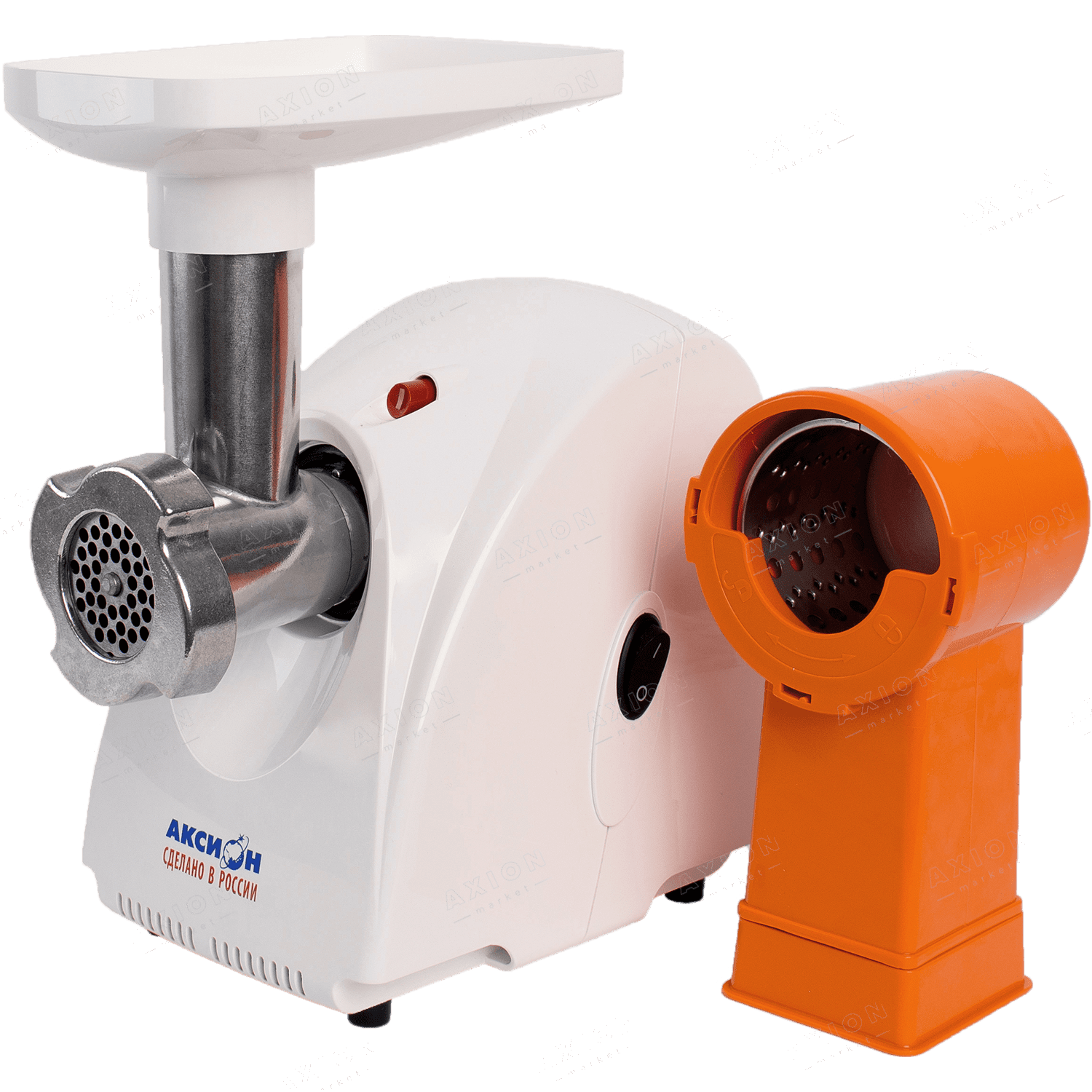 мясорубка Аксион М32 снабжена удобным отсеком с откидной крышкой для хранения дополнительных решеток и шнура питания