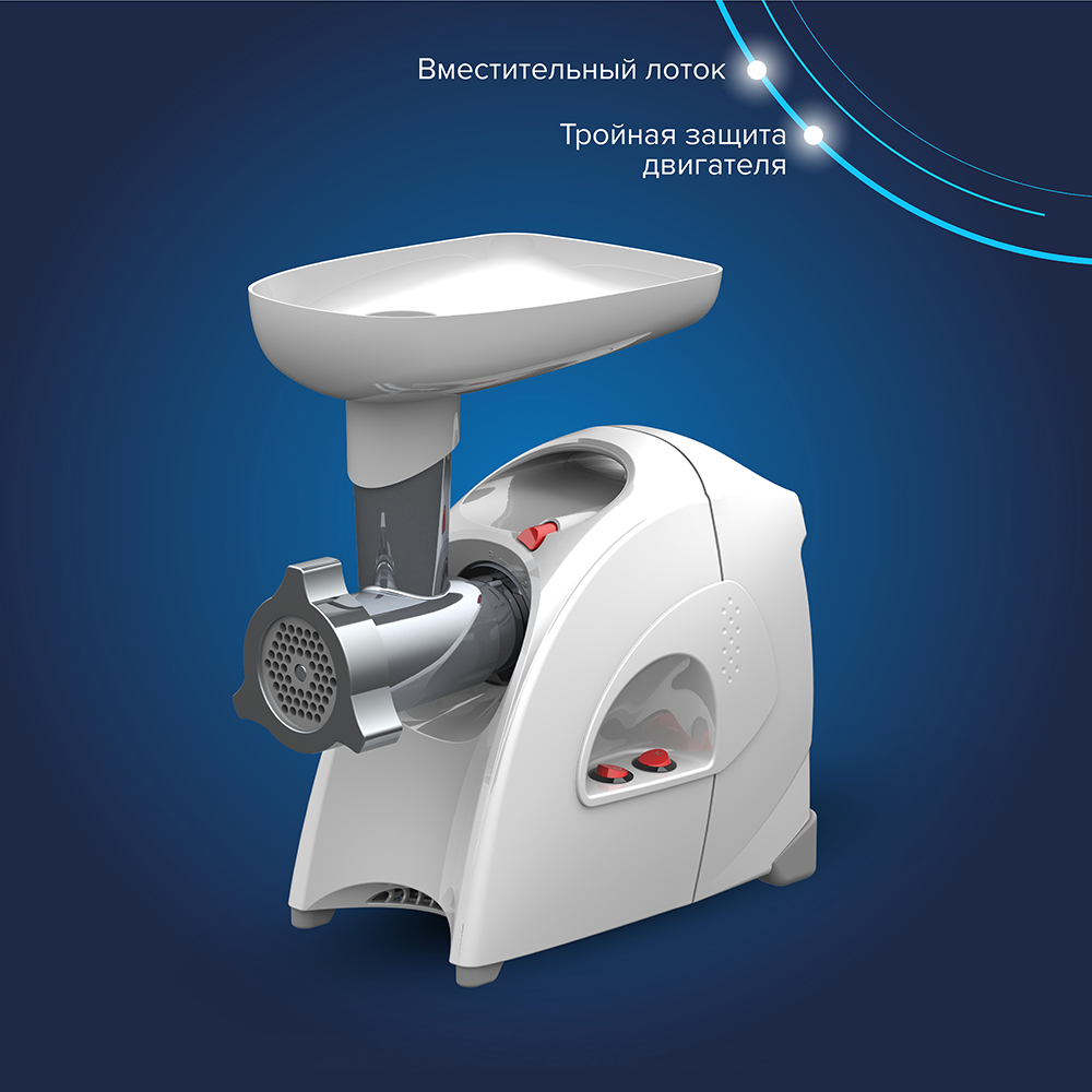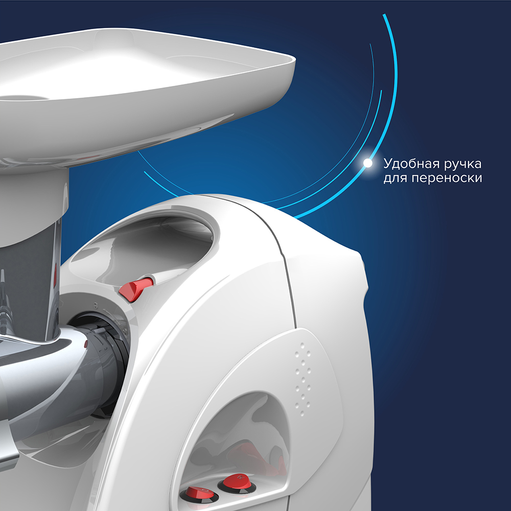 - Особая заточка ножа и решетки увеличенной толщины из нержавеющей стали, обеспечивающие высокое качество фарша из всех видов мяса и других продуктов