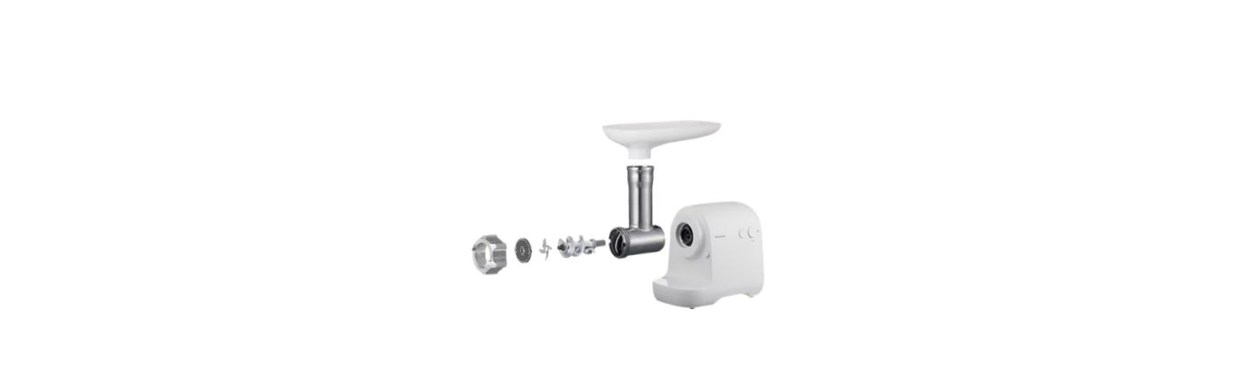 Мясорубка оснащена двигателем мощностью 1 700 Вт и ножами японского производства, что позволяет эффективно измельчать мясо. В комплекте поставляются насадки для приготовления разнообразных блюд.