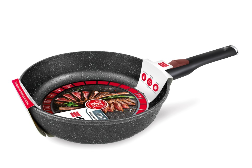 Сковорода многофункциональна, обеспечивает комфорт и легкость в использовании. Форма сковороды идеально подходит для большинства рецептов. Благодаря высоким бортам и большой полезной площади дна, сковорода отлично подходит для приготовления таких блюд как котлеты, шницели, тефтели, голубцы, жаркое, гуляш.